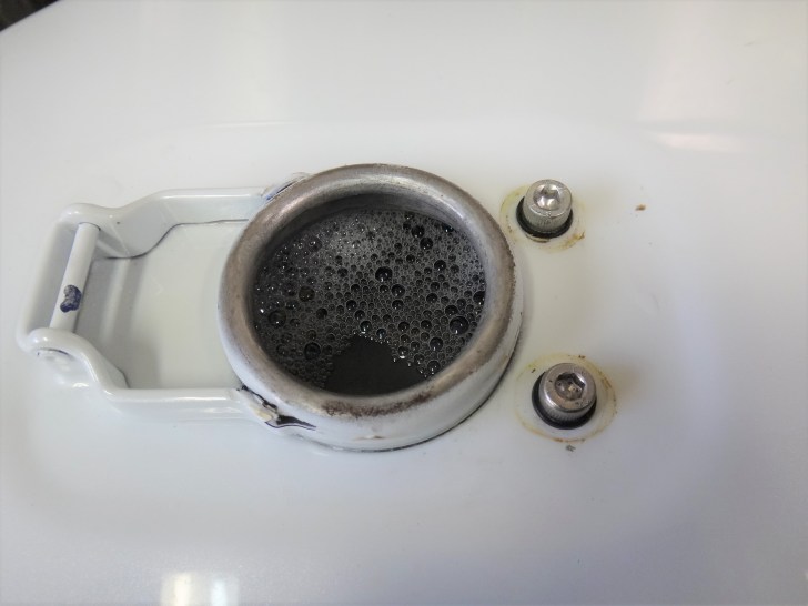 今回はサビの程度がひどくなかったのでこの方法ですがサビがひどい場合は半分ぐらいまでのお湯の量でタンクを振っては放置、振っては放置を繰り返す方法でやることもあります。満タンまで入れてやると放置の途中で振っても意味ないんで。