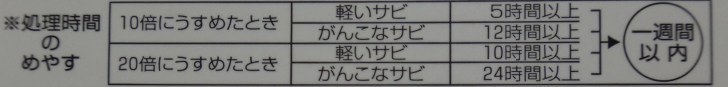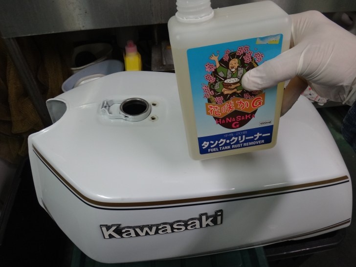 サビ取り剤はコレを使いました。この花咲かGとピカタンあたりが有名でしょうか。荒技でサンポールとかでもできなくはないですがサビ取り後の防錆効果等はもちろんないです。まあどんな薬剤使っても一回サビたタンクはサビやすいですけどね。 気休め程度でも防錆効果あった方が良い。