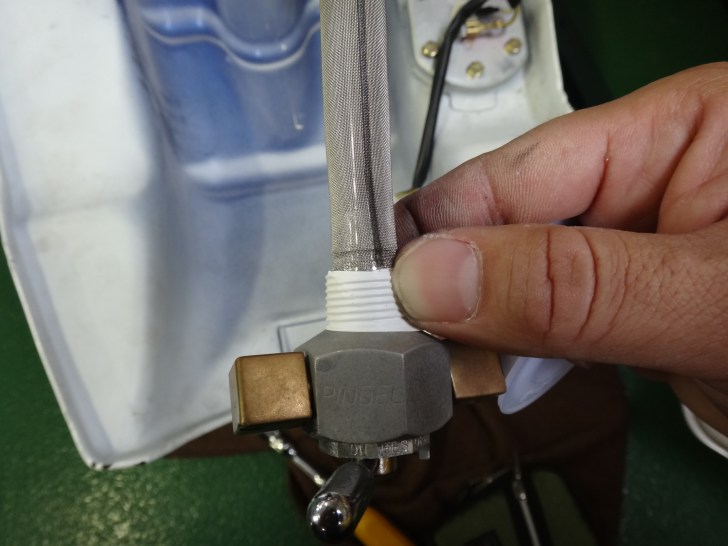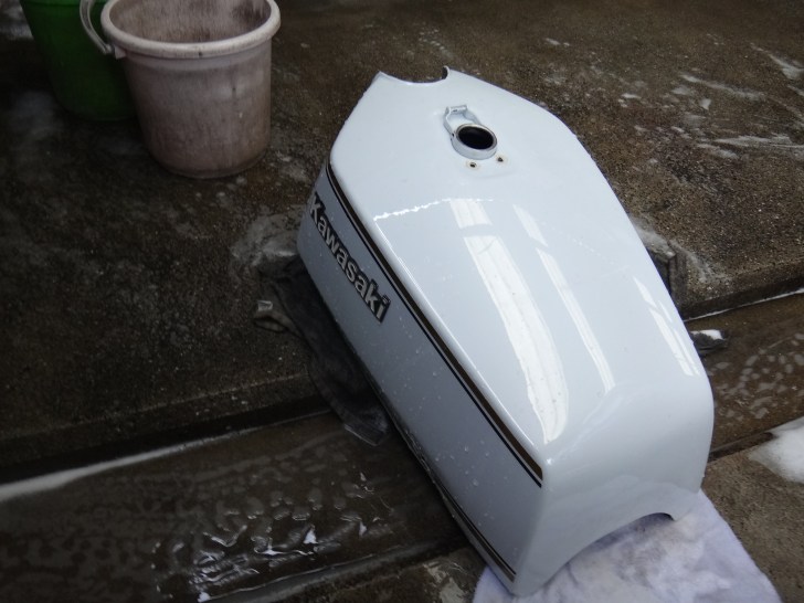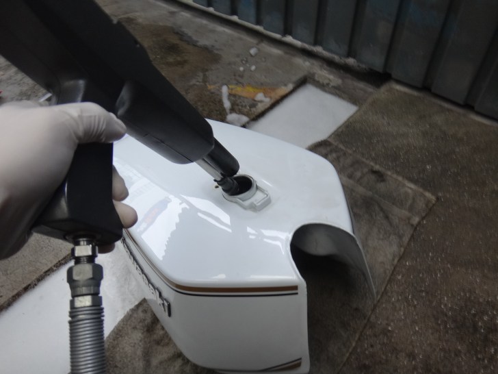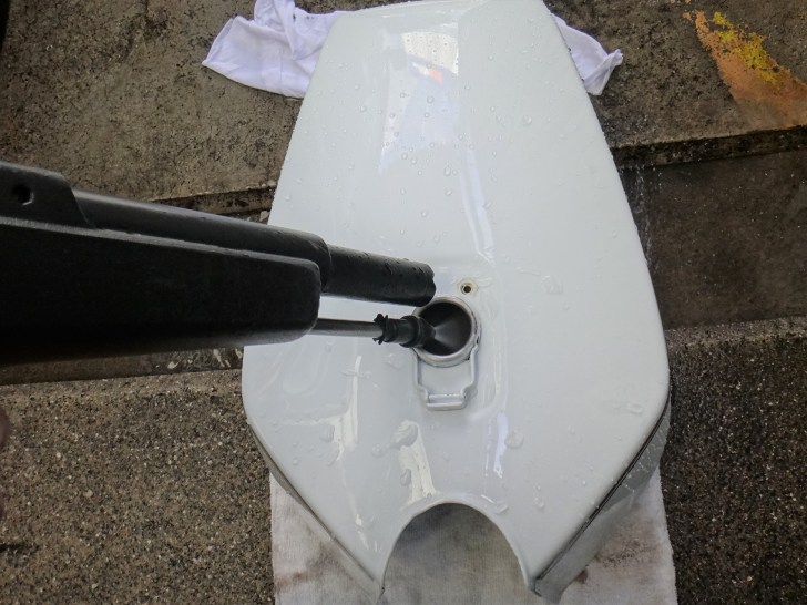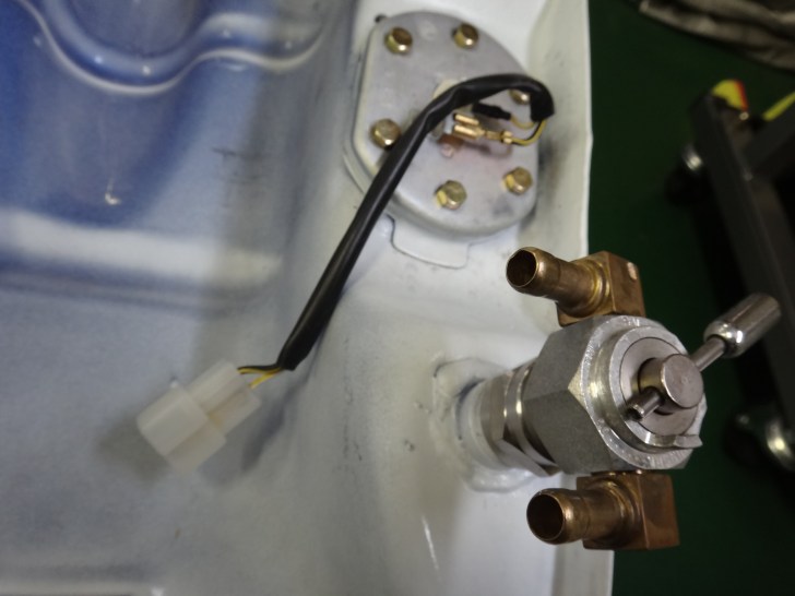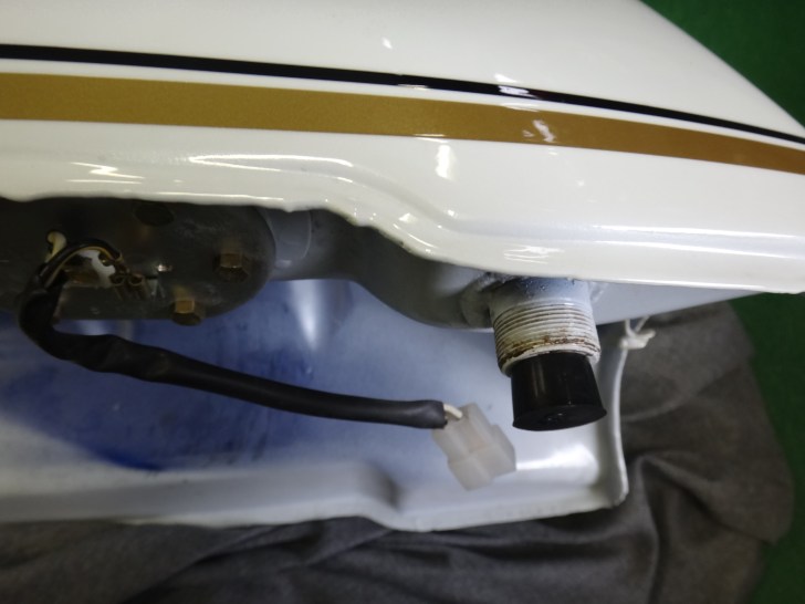 洗い終わったら薬剤でサビを落としていくんですがコックのところと給油口のところに栓をしないといけません。(厳密にはZ1Rにはフューエルゲージがついてるんですが僕のは壊れてるし直すつもりもないんでゲージセンサーは着けたままやってます)